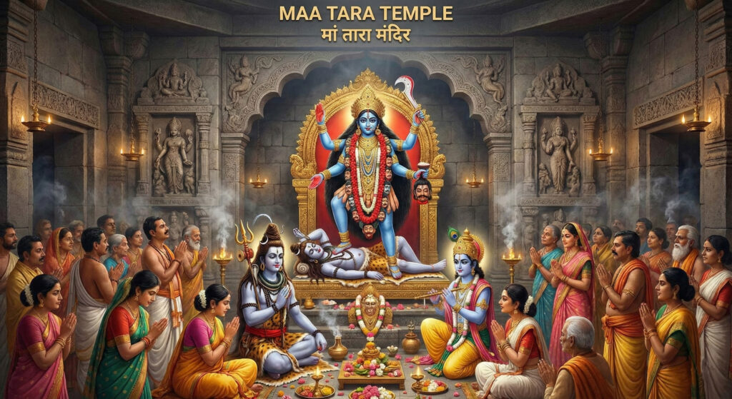 The Divine Mother Maa Tara Liberates Her children from ego and worldly bondages. Maa Tara Blesses deserving devotees With The Deliverance from all difficulties, And The Guidance to navigate the complexities of the material world and cross the ocean of samsara to achieve spiritual liberation.